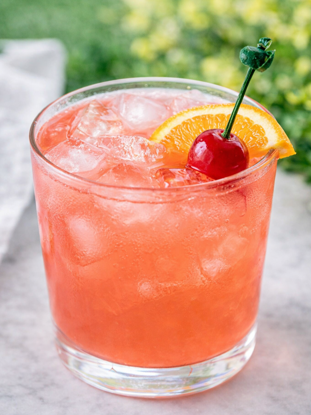 Garnish: cherry and orange wheel